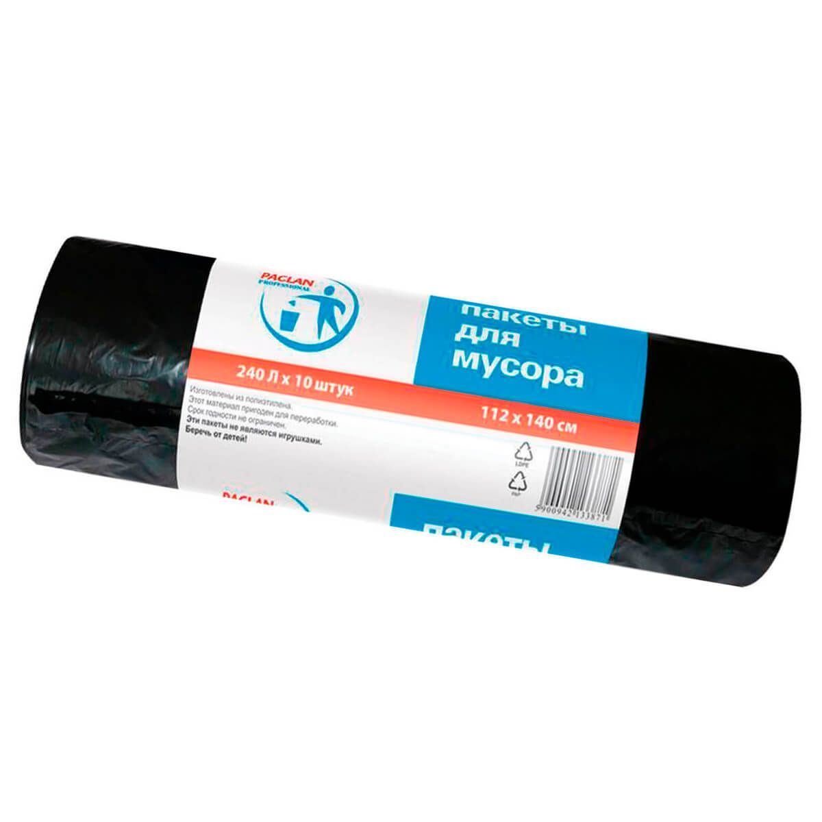 Мешки для мусора 240 л, черные, в рулоне 10 шт., ПВД 30 мкм, 1400х1120 мм, PACLAN Professional, 606336