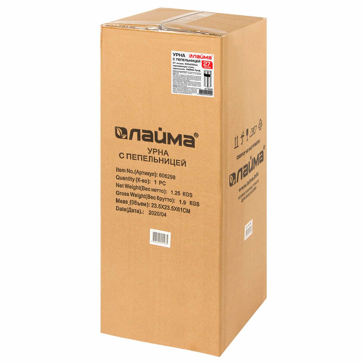 Урна с пепельницей 27 л, нержавеющая сталь, зеркальная, LAIMA PROFESSIONAL во Владивостоке