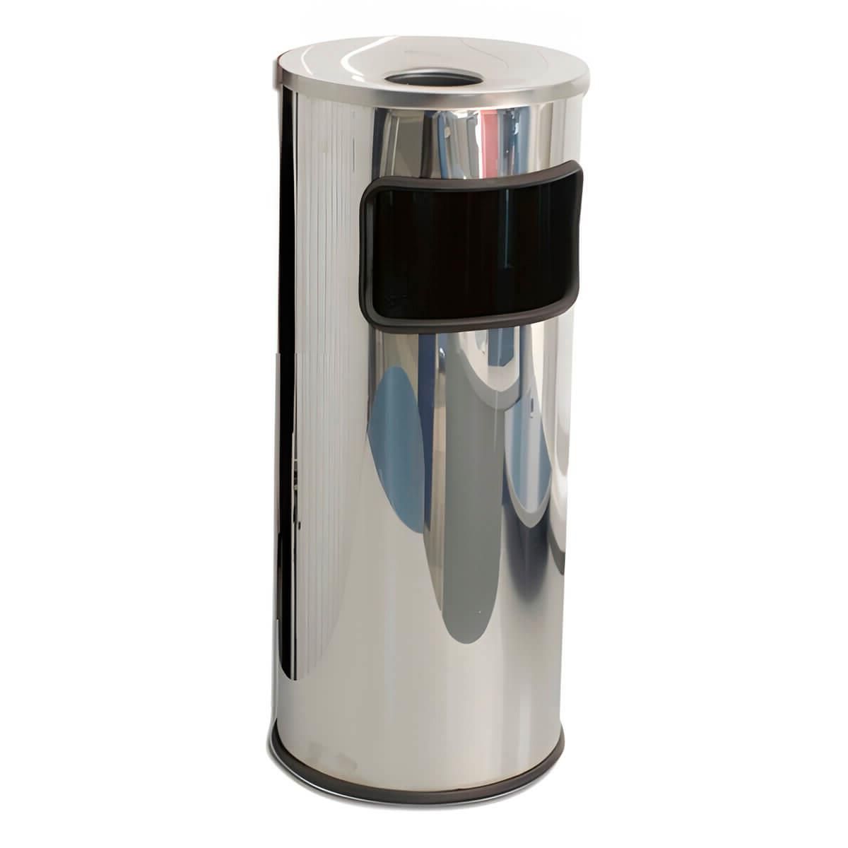 Урна металлическая с пепельницей, 29 л, нержавеющая сталь, хром